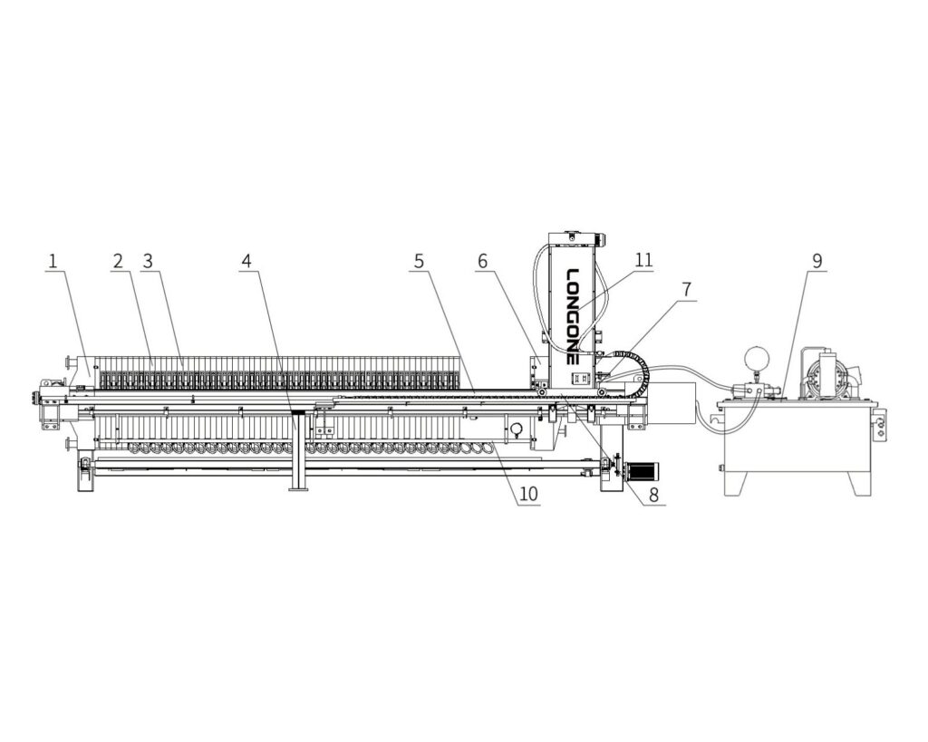 - Filtration System: Includes chamber filter plates, filter cloths, and optional membranes for efficient solid-liquid separation.