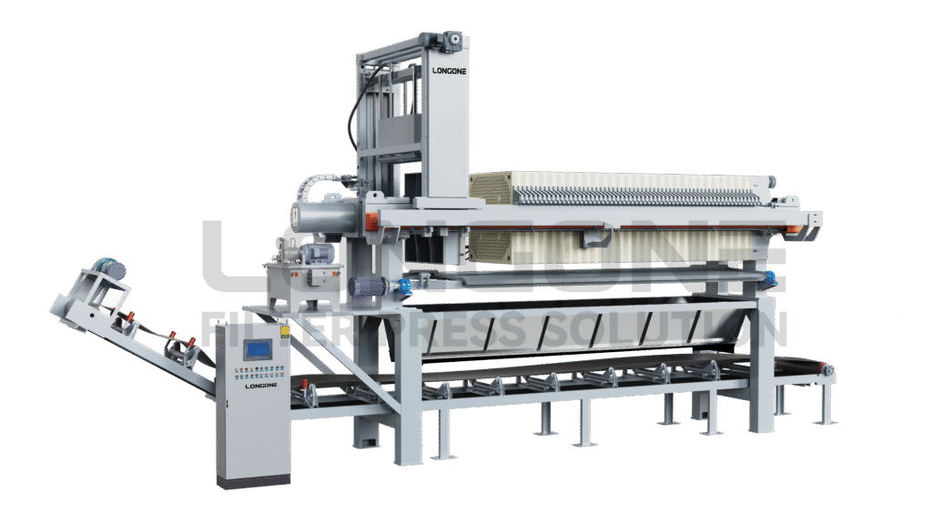 Longone filter press machines are made to separate solids and liquids quickly, reliably, and at a low cost for tough industrial uses. Our equipment is built to last, can handle high pressure, and is easy to use, all of which help it work consistently. Some of the main benefits are shorter filtration cycles, less moisture in filter cakes, and lower operating costs. Longone presses have long service lives, require little maintenance, and are very energy efficient. They have advanced automation options, durable filter plates, and optimised hydraulic systems. These benefits make our systems perfect for projects that need to treat a lot of wastewater or sludge all the time.