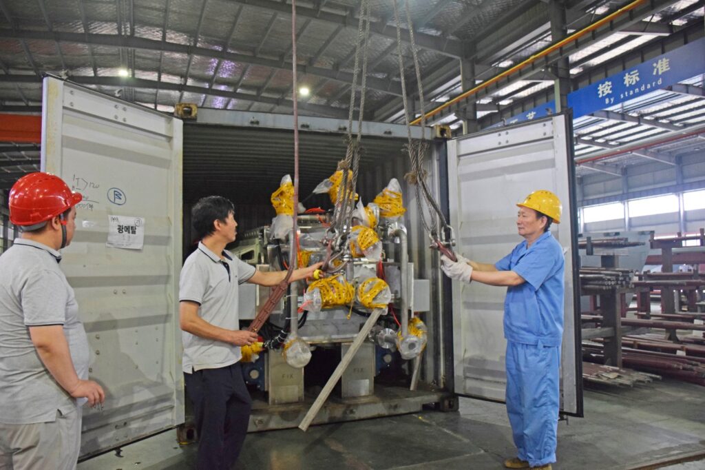 Container packaging is a common method where the filter press is loaded into standard shipping containers (usually 20-foot or 40-foot containers). This method provides a secure and weather-resistant environment, protecting the equipment from external elements such as moisture and dust. Containers can be easily transported and stacked, allowing for efficient shipping logistics. Container packaging is suitable for medium-sized filter presses and accessories that fit within the container dimensions, ensuring safe and organized transportation.